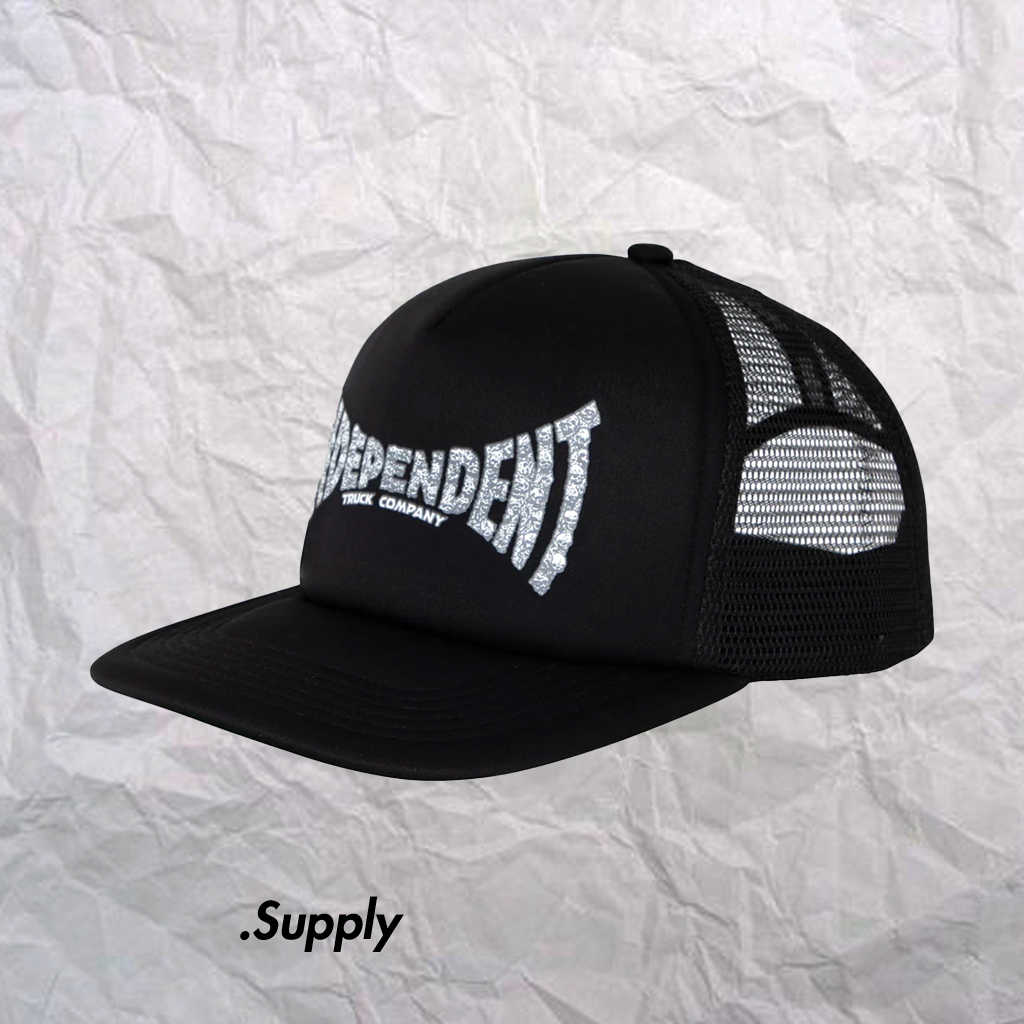 INDEPENDENT SKULL SPAN MESH TRUCKER UNSTRUCTURED HAT BLACK